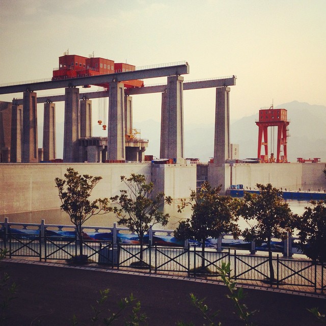 The first night was triply awesome. Hot oil bean curd at the buffet! Trip through the Three Gorges Dam locks! Discount buckets of beer! We drank up and talked a lot and squeezed past some railings for a better view at the end of the boat. The lock ascension process involved enough metallic groans and other such industrial noise for me to wonder if we had sailed into Silent Hill.