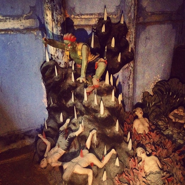 Fengdu Ghost City is uniquely bizarre – a mountaintop collection of dioramas and statues illustrating traditional beliefs about death, ghosts, and the afterlife. The place was packed, and our guide impossible to parse over the others she was competing with, even though she wore a portable loudspeaker. I gave up on context and focused on photos.